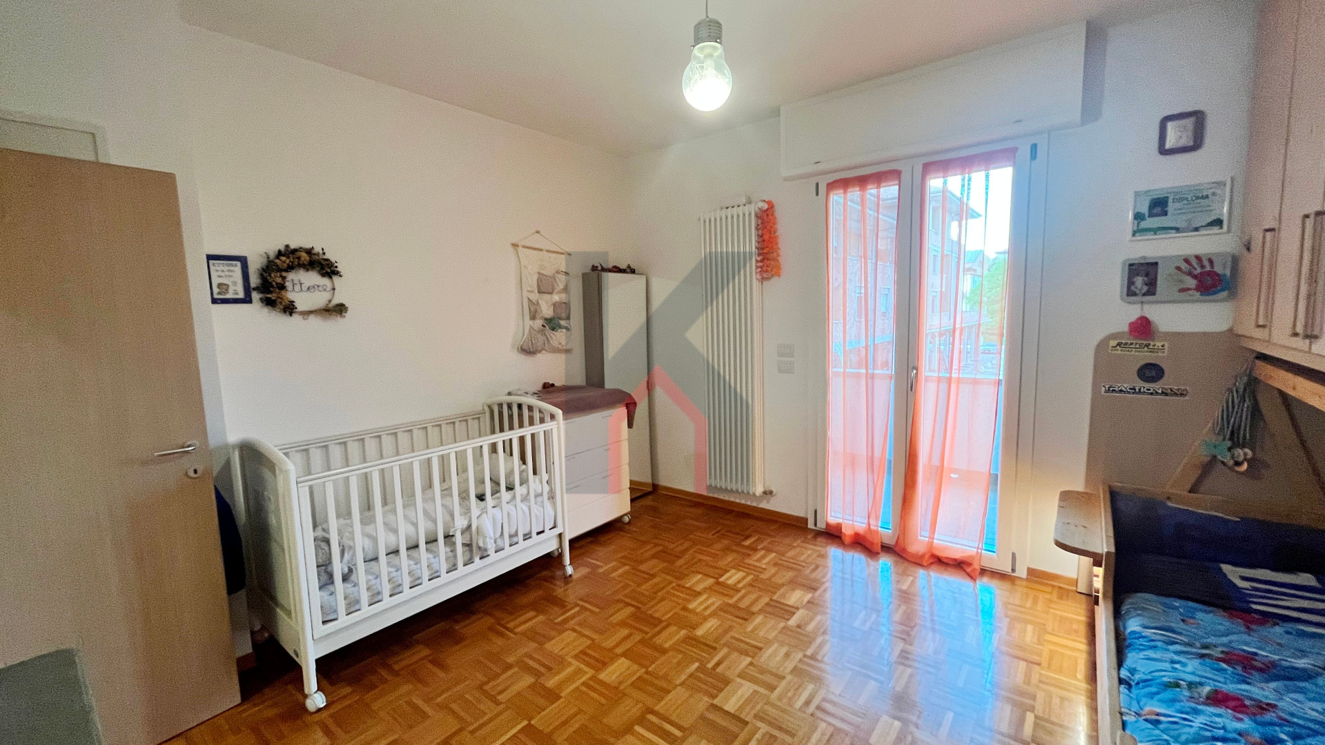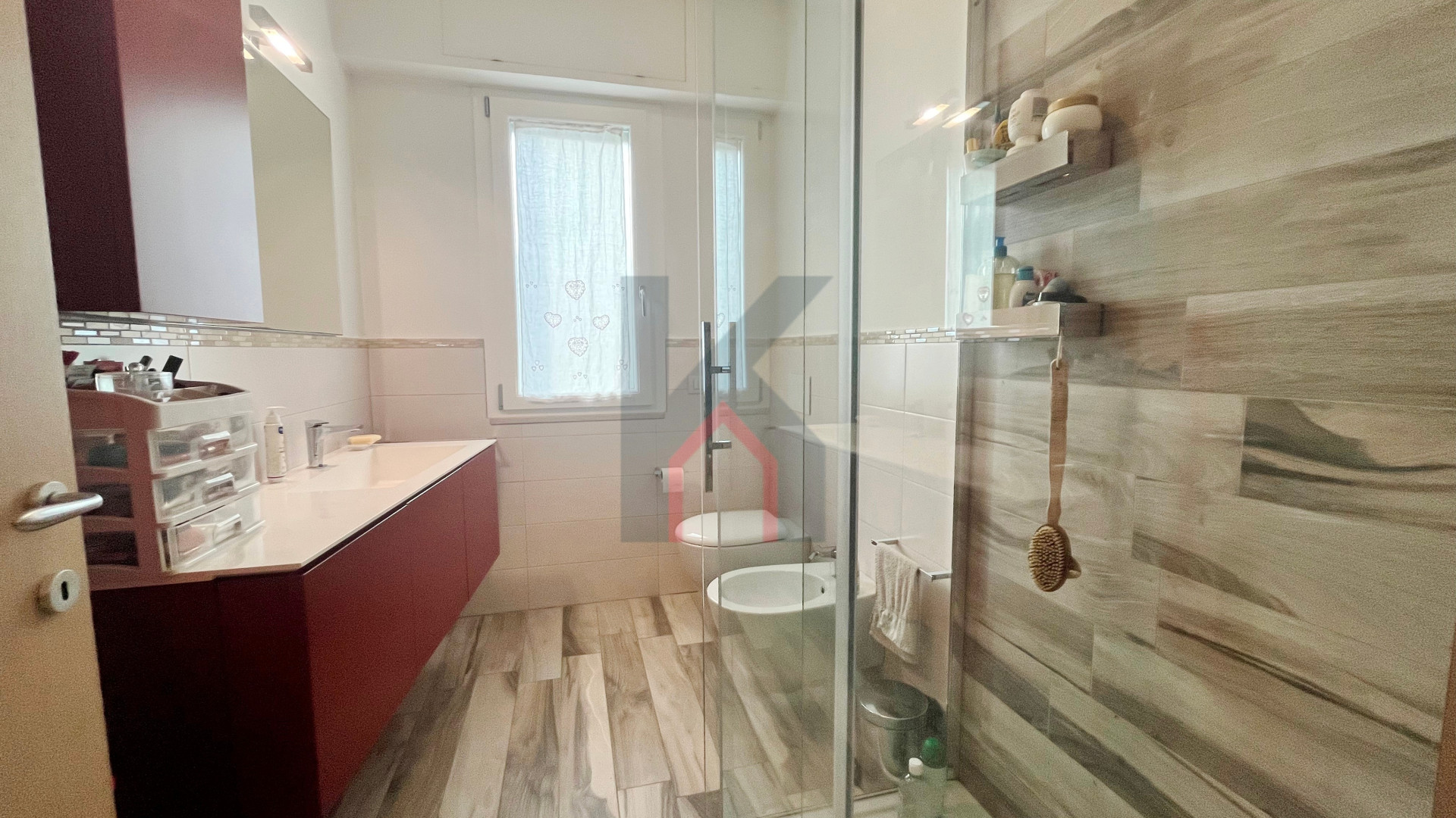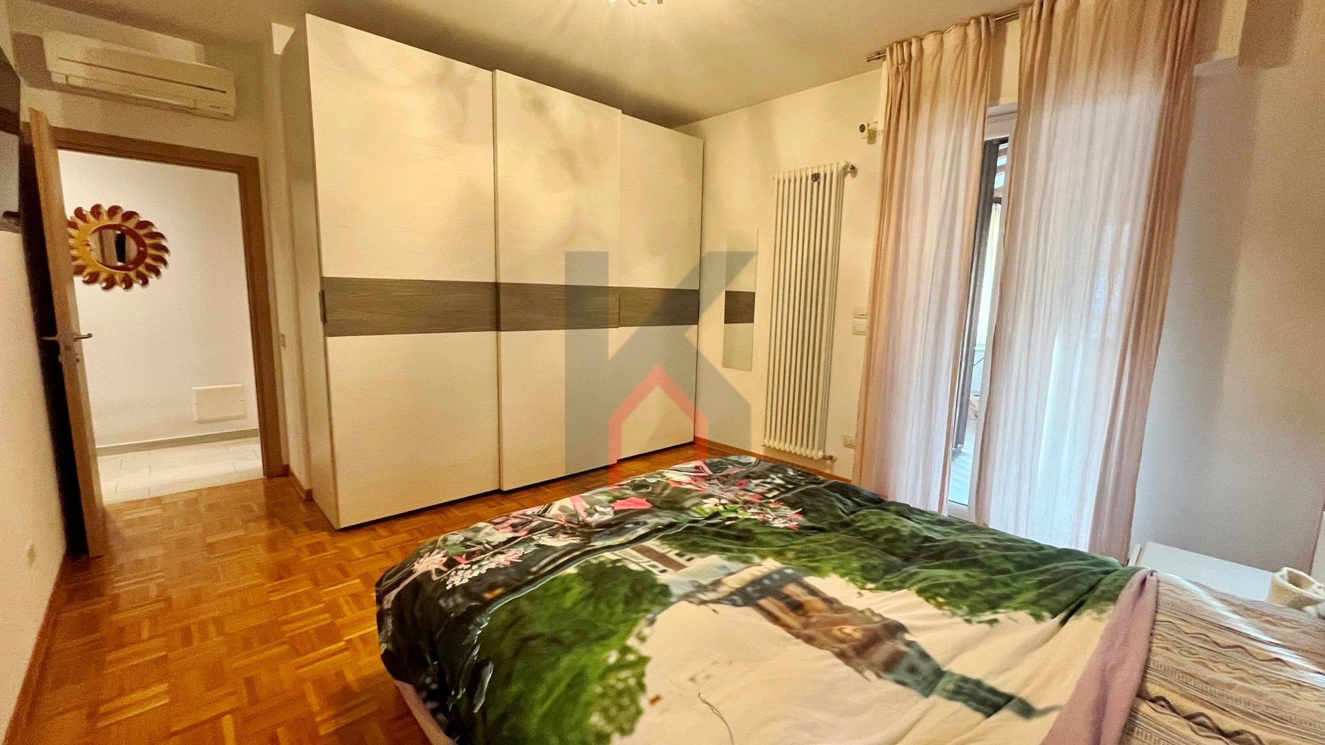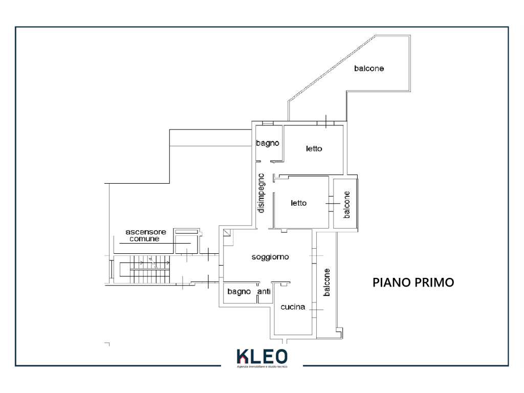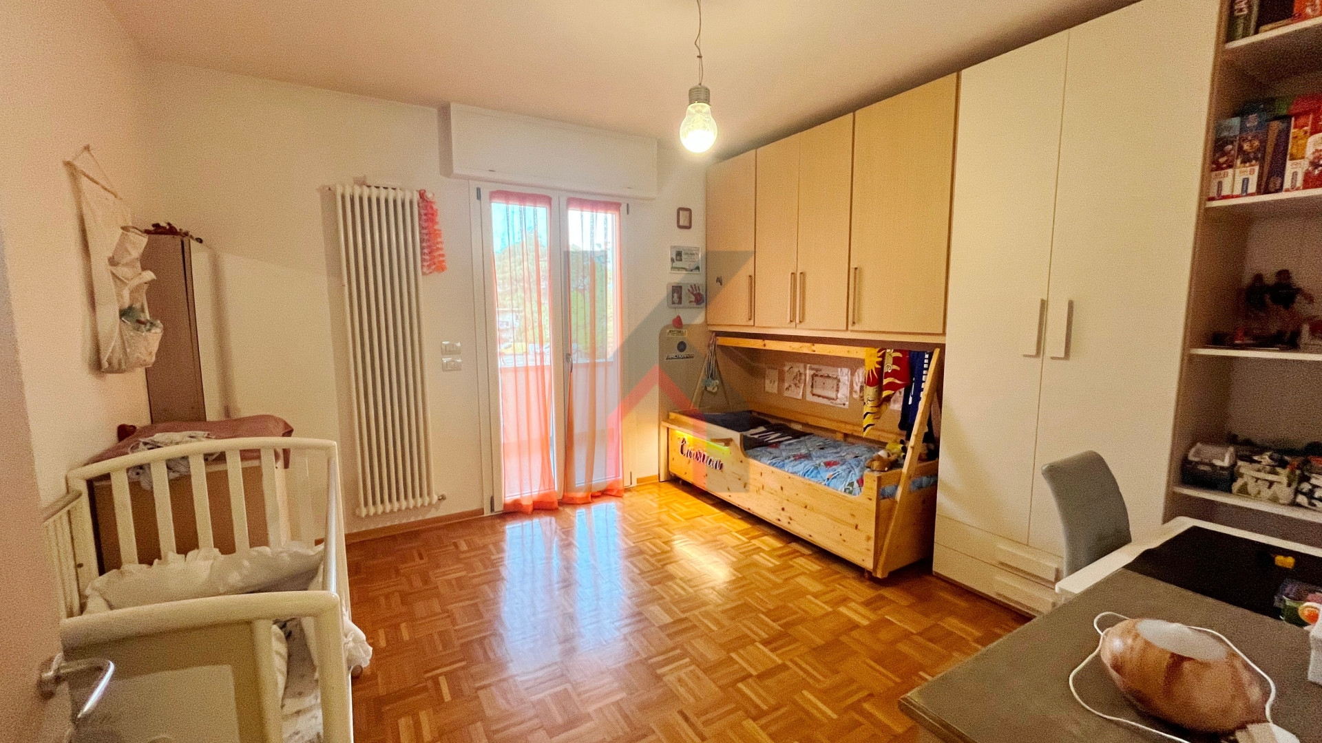 balcone zona giorno accessibile sia dal soggiorno che dalla cucina, disimpegno notte, secondo bagno finestrato con box doccia, camera da letto doppia con accesso al secondo balcone esclusivo,