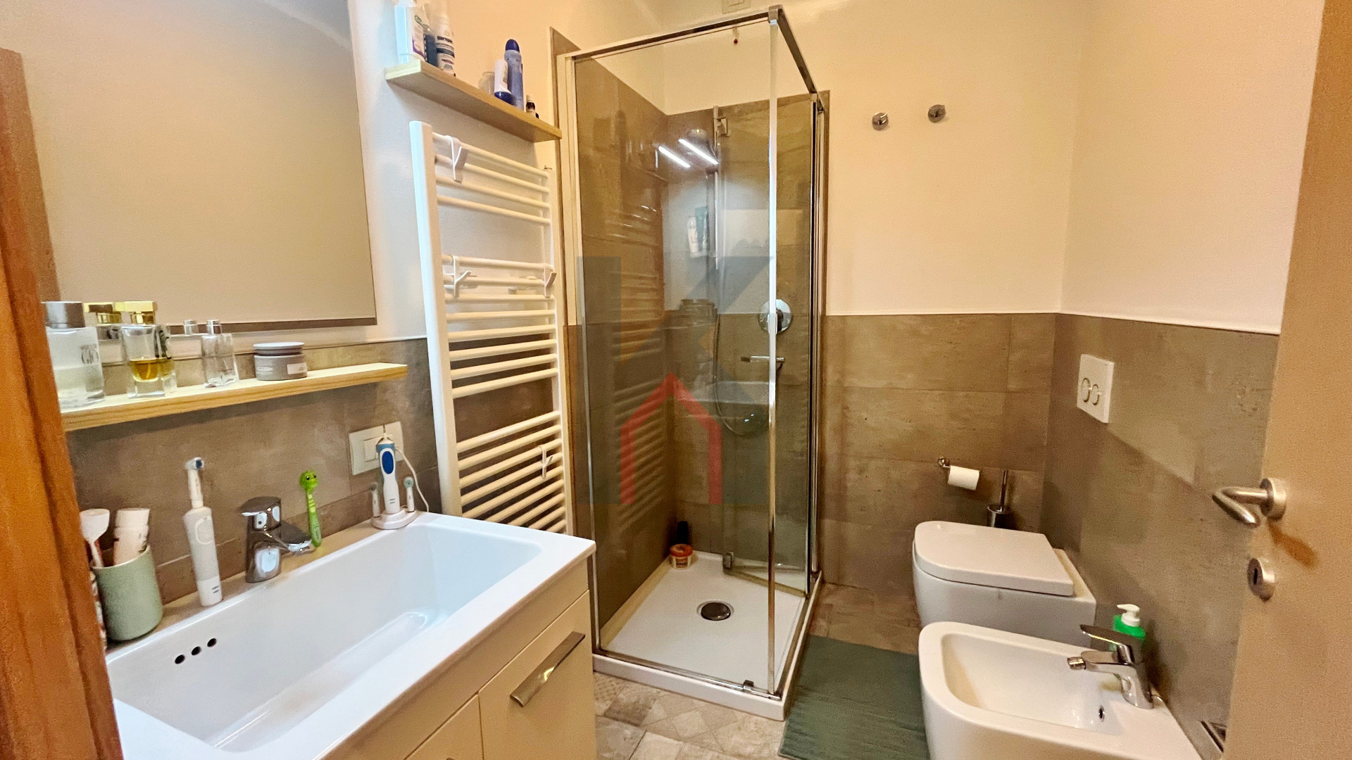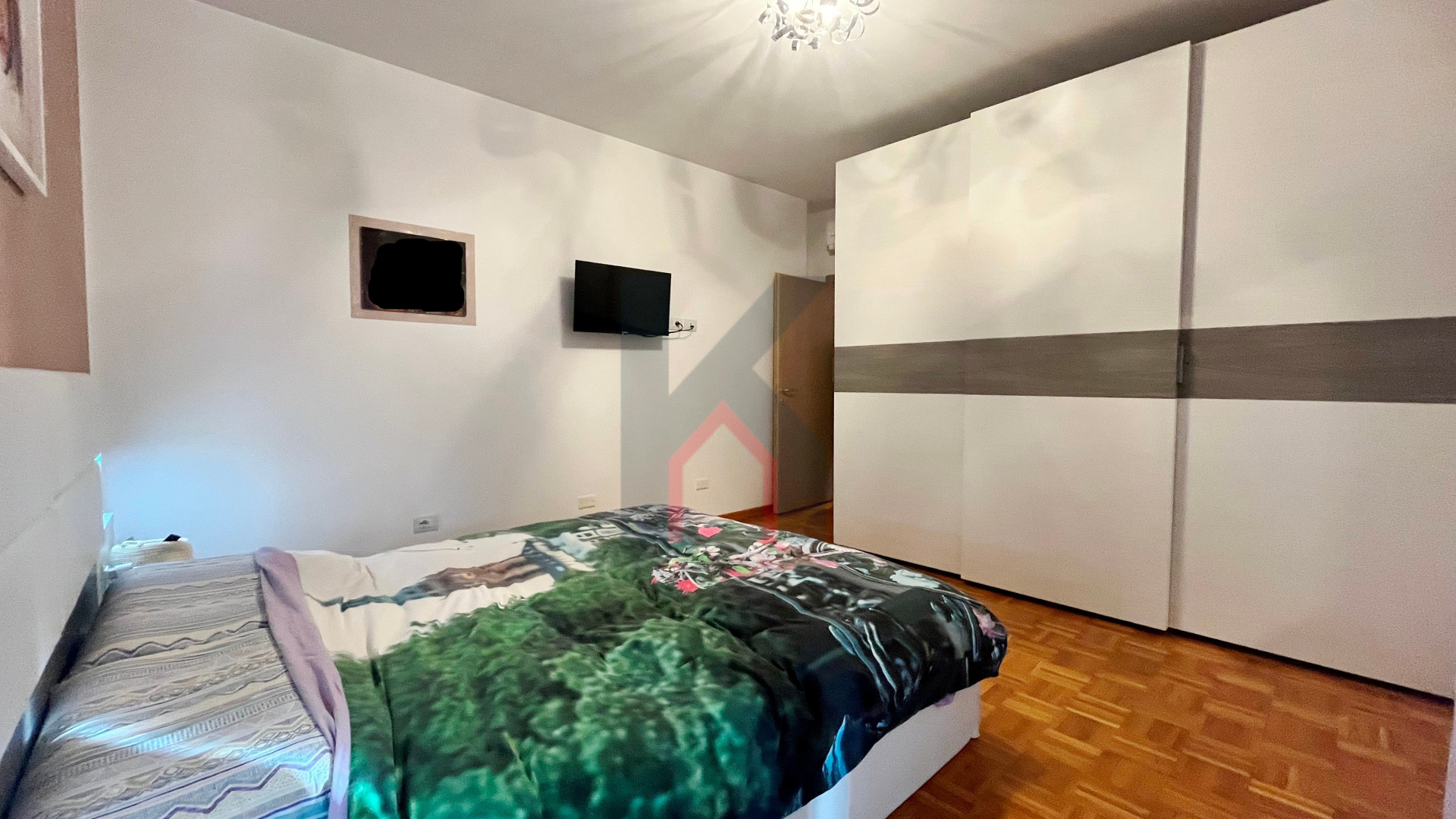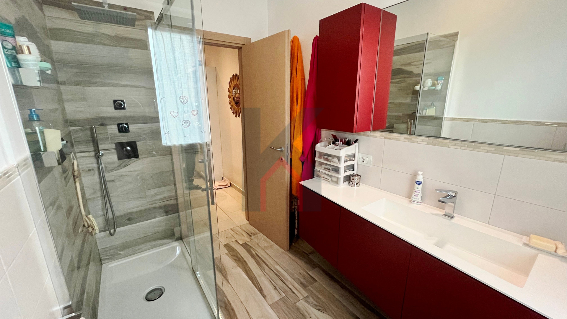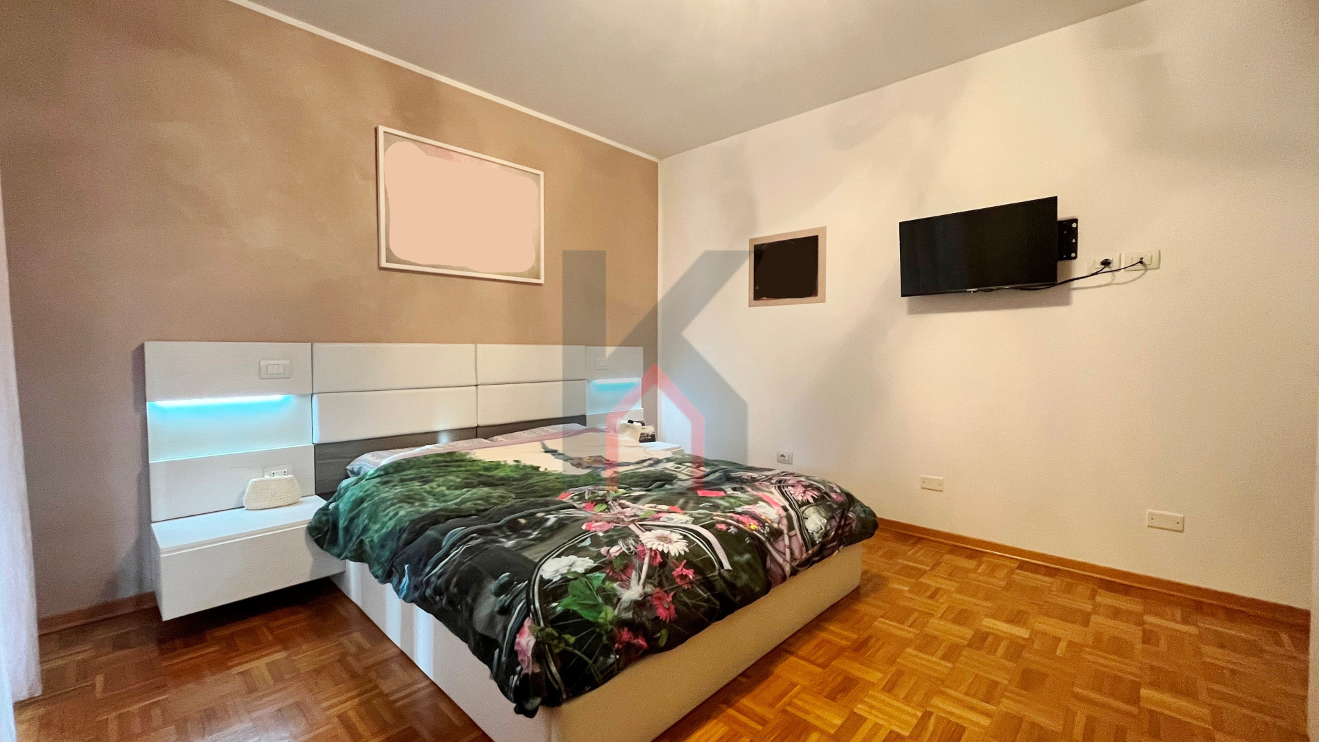 balcone zona giorno accessibile sia dal soggiorno che dalla cucina, disimpegno notte, secondo bagno finestrato con box doccia, camera da letto doppia con accesso al secondo balcone esclusivo,