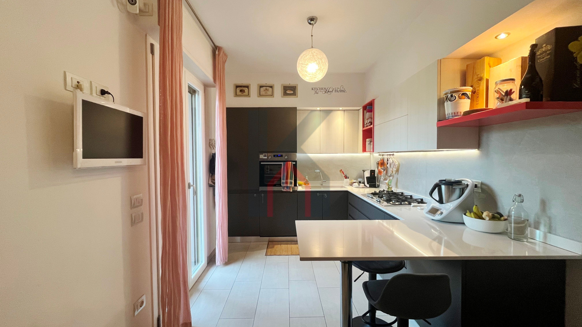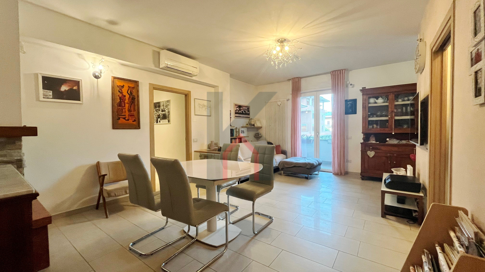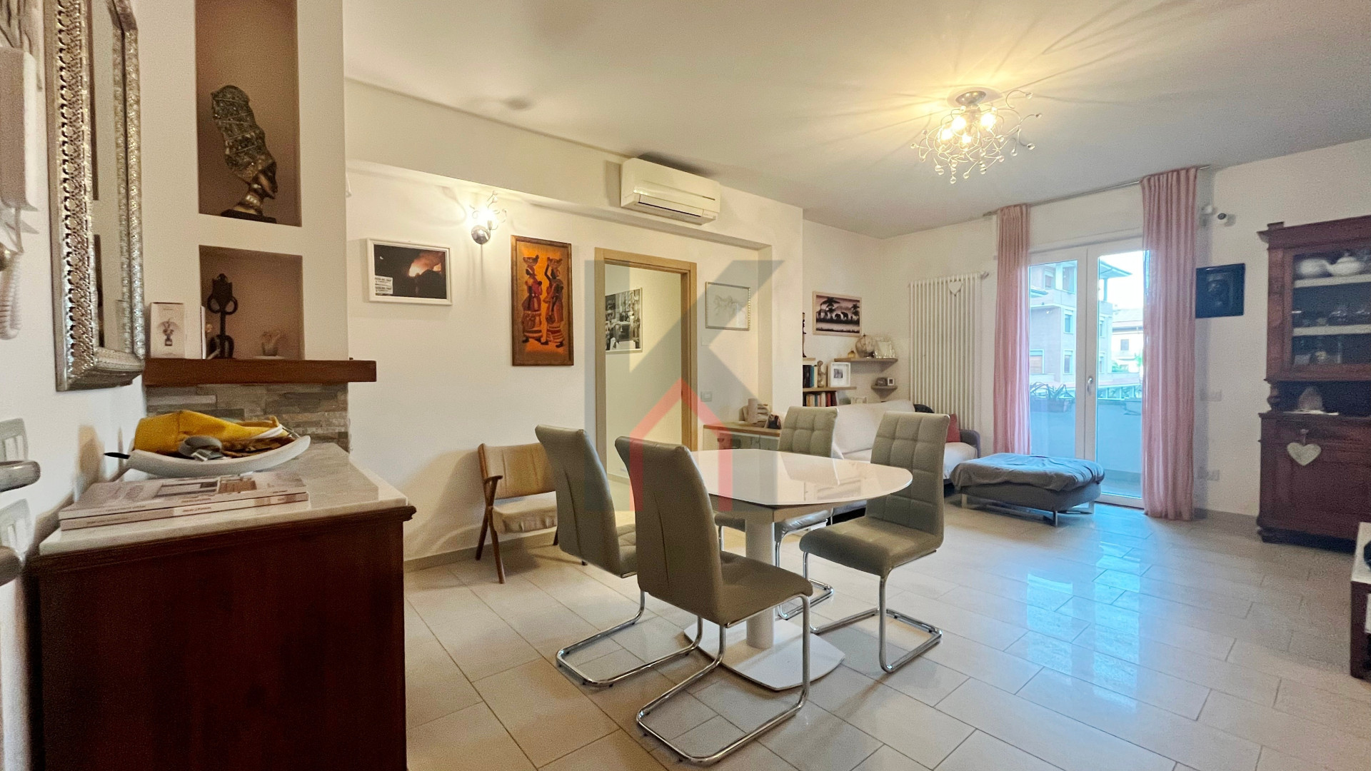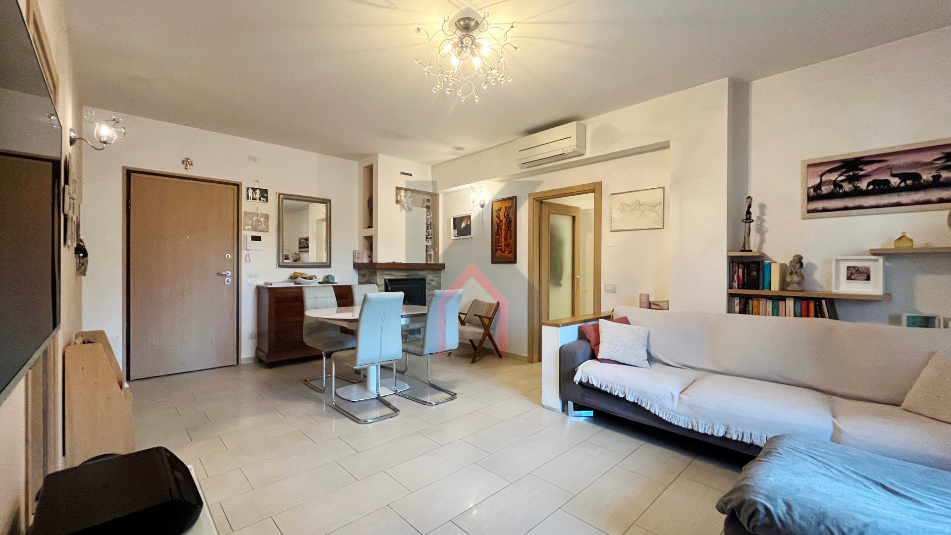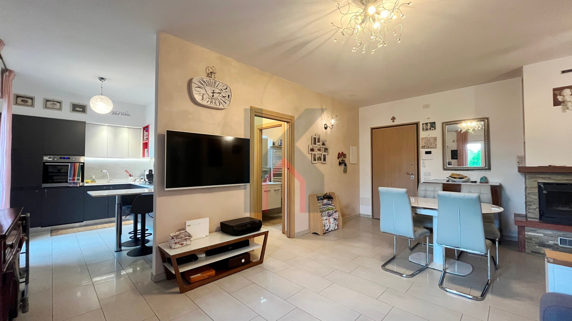 immobile molto luminoso e di 76 mq calpestabili, così composto: ingresso diretto nel soggiorno con caminetto ad angolo, cucina abitabile, antibagno e bagno con aspirazione forzata e box doccia,