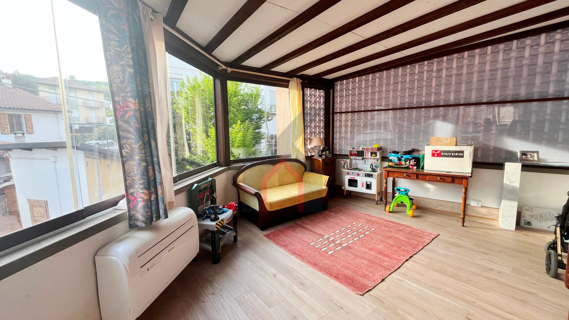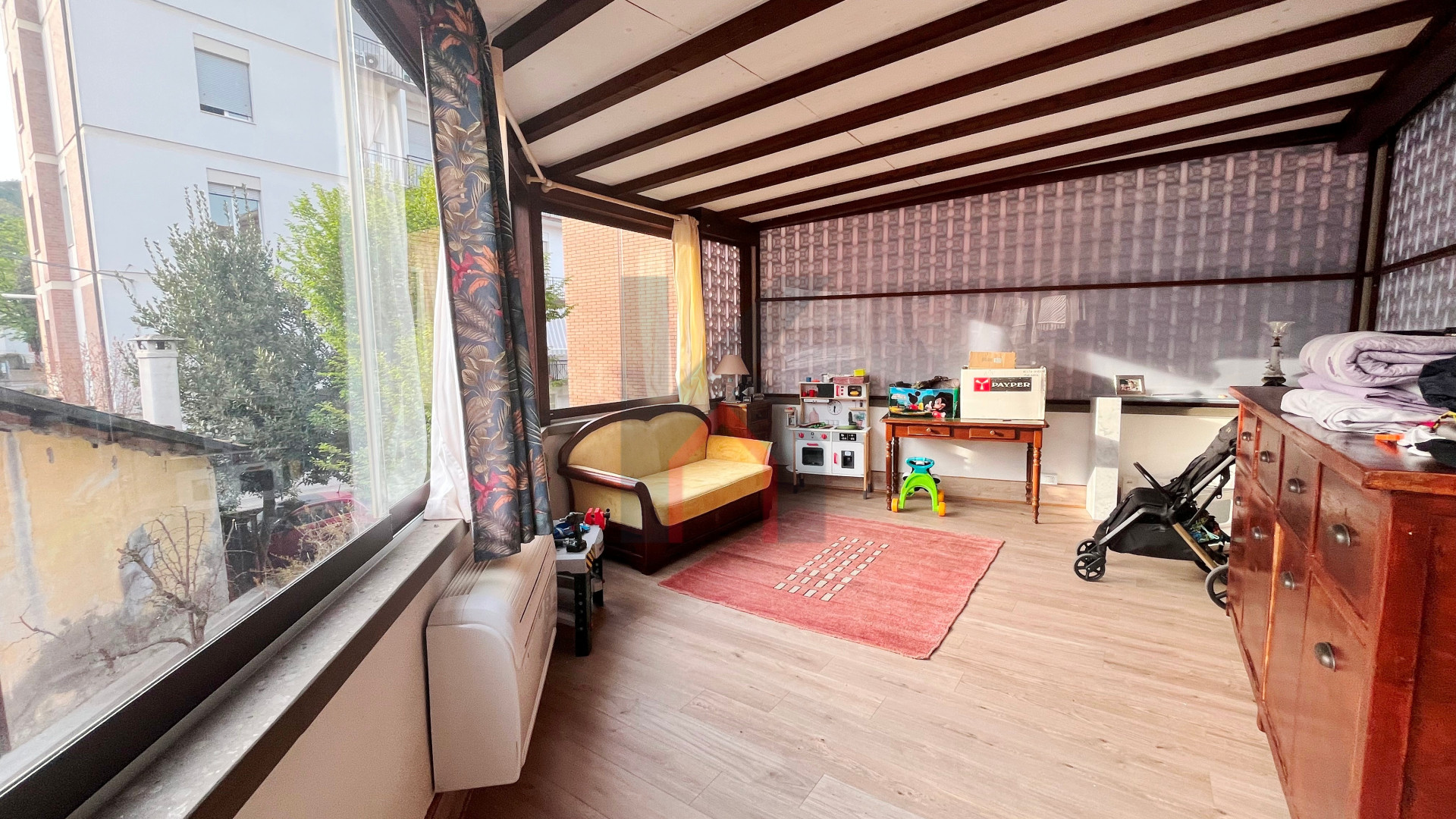 ampia camera da letto matrimoniale collegata ad un'ampia terrazza abitabile riscaldata e verandata di 26 mq attualmente adibita come sala relax con zona lavanderia.
